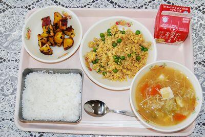 給食では今年も秋の味覚がたくさん登場しています。今日はさつまいもを使っています。甘くてホクホクとしていておいしいですよね。大学いもは油で揚げたさつまいもに砂糖やしょうゆを合わせて作る蜜をからめた料理です。大学いもという名前は,大正時代から昭和にかけて,東京の大学生が好んで食べていたことが由来とされています。おいしい秋の味覚を味わいましょう。