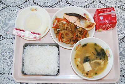 ますの塩焼き 五目きんぴら 小松菜とじゃがいものみそ汁