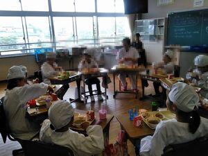 給食後,1年生の教室で「あいうべ体操」と歯磨きの指導もいただきました。