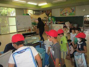 遠くからは草刈機械の音,ひぐらしの声,波が岩にぶつかる音が聞こえ,涼しさも相まって「中井小 最高!」と素晴らしい自然環境を堪能しました。