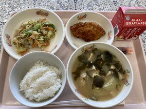 じゃがいもとわかめのみそ汁 牛乳 (ごはん)347㎉