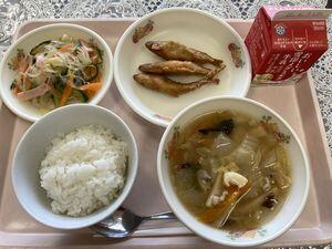 小魚は小さな骨も丸ごと食べることができるので,カルシウムが豊富です。今日の小魚はわかさぎです。給食では,よく小魚のメニューが登場しますが,それは皆さんにしっかりカルシウムをとってもらうためです。カルシウムは,骨や歯をつくるもとになる栄養素ですが,大人になるとカルシウムは吸収されにくくなるので,今のうちにしっかり蓄えておくことが大切です。よく噛んで丸ごと食べ,大切な栄養を無駄にしないようにしましょう。