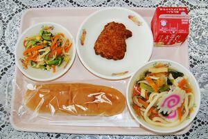 五目うどん チキンみそカツ かみかみサラダ