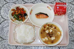 なめこのみそ汁 牛乳 (ごはん) 383㎉(ごはん除く)
