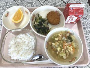 ふわふわ卵スープ オレンジ 牛乳 (ごはん)