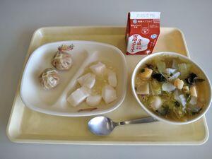 小籠包 八宝菜 杏仁のゼリー寄せ 牛乳