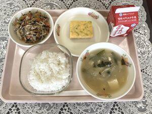 切り干し大根とひじきの煮物 牛乳 (ごはん)