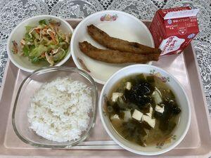 じゃがいもとワカメのみそ汁 牛乳 (ごはん)