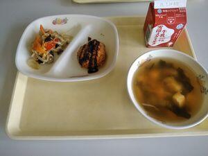 ロースカツ 野菜炒め 豆腐とわかめのみそ汁 牛乳