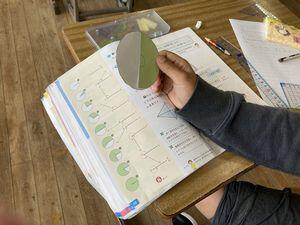 今日は4年生の算数に少しお邪魔しました。教師用デジタル教科書と,教科書から切り取った切り込みの入った丸い紙を組み合わせながら,角度について学習していました。次々と手が挙がったりつぶやきが聞こえたりと活気のある授業でした。
