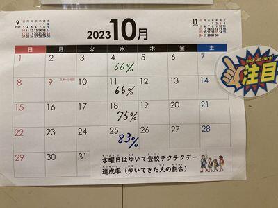 ↓ 今日は「歩いて登校テクテクデー」でした。達成率は83%