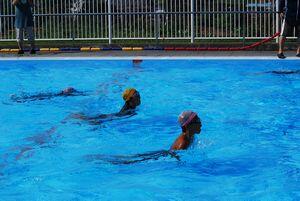 今日は出張で1日学校を空けますので,学校の様子を紹介することができません。先週実施した校内水泳記録会の,5・6年生の「水中ポートボール大会」の様子を中心にPERT2として紹介させていただきます。
