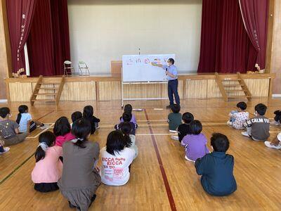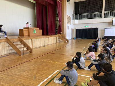 終業式に入る前に,スライドショーで1学期の学習の様子を紹介しました。他の学年が,様々なことにチャレンジしているのを知って,驚いていた児童もいました。全校児童で頑張ったり楽しんだりした運動会や海に親しむ会の写真を見て,懐かしむ児童も多かったようです。