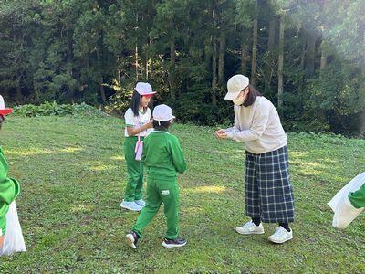 秋晴れの爽やかな日に出掛けられて良かったですね。帰校の会では,子供たちが集めたたくさんの秋をお土産にいただきました。ありがとうございました。一番下の写真がそのお土産です。