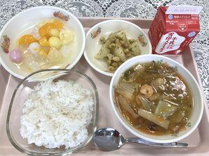 鮭のちゃんちゃん焼き 小松菜の礒香和え 牛乳