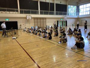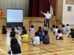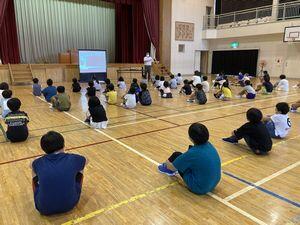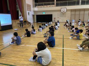 業前の時間を使って「防災朝会」を行いました。テーマは「大雨・洪水被害から身を守ろう」です。