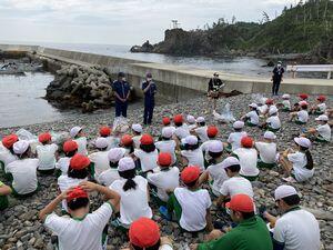 雨天のため9日(金)に実施できなかった「海に親しむ会」を本日無事に開催することができました。ビーチクリーン作戦(全学年),気仙沼海上保安署員様からの「海の安全」の講話(全学年),海に入ってみよう(全学年),タイドプールでの生き物探し(下学年),箱めがねでのぞいてみよう・ウニの採取(リリース),たづぼんこに挑戦(上学年)と盛りだくさんの内容でしたが,地域の方や,保護者の皆様のご協力のおかげで,充実した活動を行うことができました。子供たちは,身近な海に親しむ活動を通して,地域の自然の素晴らしさを体感することができました。