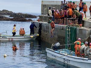 ↑たった15分でこんなにたくさんのゴミが     ↑気仙沼海上保安署員さまからの安全講話
