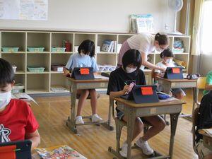 話題をもう一つ。今日はおおぞら号(移動図書館)の来校日でした。「海に親しむ会」が予定されていたため,今日は借りていた本を返却するだけの予定だったのですが,おおぞら号の担当の方のご配慮もあり,急遽,本を貸していただけることになったのです。子供たちは大喜び。一目散におおぞら号を目指して駆けていったのでした。