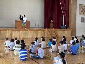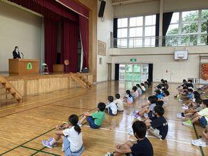 ↑ベッキー先生に感謝の言葉を述べた小山さん(5年)