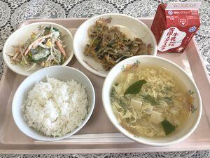 豚キムチ ごぼうサラダ チンゲンサイと卵のスープ