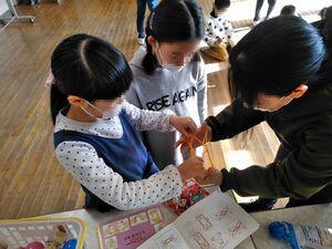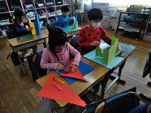1年生は生活科「昔のあそびを楽しもう」,女の子たちはあや取りに挑戦していました。2年生は図工「カッターナイフハウス」,カッターは初めてかな?