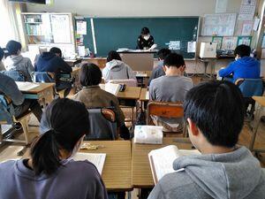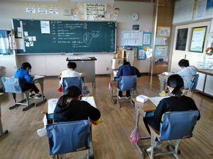 5年生は多角形の性質のテストの見直し。6年生は国語「表現をくふうして文章を書こう」を学習していました。みんな真剣に取り組んでいて,大変立派でした。
