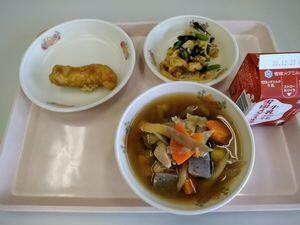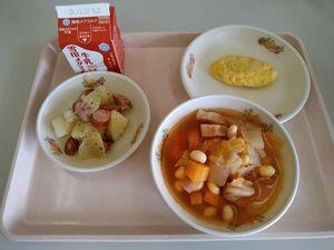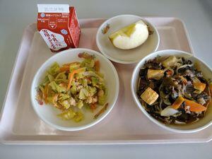 すき焼き風煮 キャベツのツナ和え 唐桑産りんご 牛乳