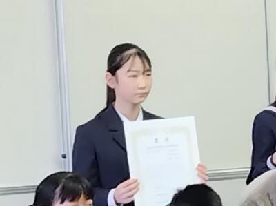 「中学生人権作文コンテスト」の表彰がありました。感謝状もいただきました。