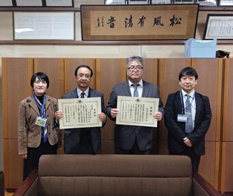 12月11日(木)仙台法務局気仙沼支局長様,人権擁護委員の皆様が来校し,人権作文コンテストで入選した3年生の佐々木結生さんの賞状を届けていただきました。本来なら直接本人に手渡されるところですが,本日は標準学力テストの実施日と重なっているたため,代理で賞状を受け取りました。また,入賞した生徒だけでなく,毎年多くの生徒が作文を応募していることから,本校に感謝状をいただきました。ありがとうございました!