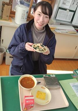12月12日(金)今日のかみかみ給食のメニュー「わかめのピリシャキサラダ」は,本校教諭 白石永先生が考案し,市の給食に採用されたメニューです。本人に聞いたところ,「噛み応えがあり,しかもヘルシーでおいしい」のがポイントだということでした。他の先生方や生徒からの評判も上々でした。よく噛んで食べる習慣を身に付けていきましょう。