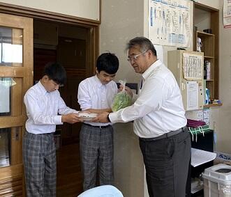 昼休みには,気仙沼税務署の署長様,総務課長様が来校されました。中学生の「税についての作文」で気仙沼税務署長賞に入賞した本校1年生菅原美陽さんに直接賞状をお渡しいただきました。「災害と税の関係についてしっかりと考えられた作品でした。」とお褒めの言葉をいただきました。