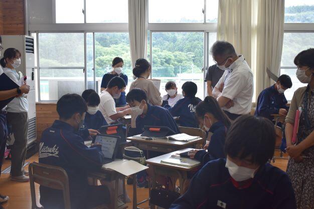 5月22日(月)に第2回目のサークルタイムが行われました。今回は「新月中学校を他の地域の中学生に知らせる動画コンテンツをつくるとしたら,どのような内容にしますか?メンバー全員の意見をもとにして内容を決めてください。」というテーマのもと,1年生から3年生までの縦割りの班編成で車座に椅子を配置し,話し合いがスタート。3年生の司会者が上手に意見を引き出しながら,終始和やかな雰囲気で先輩たちの後輩たちへの優しい配慮が随所で見られるとても良い会となりました。