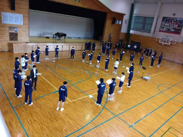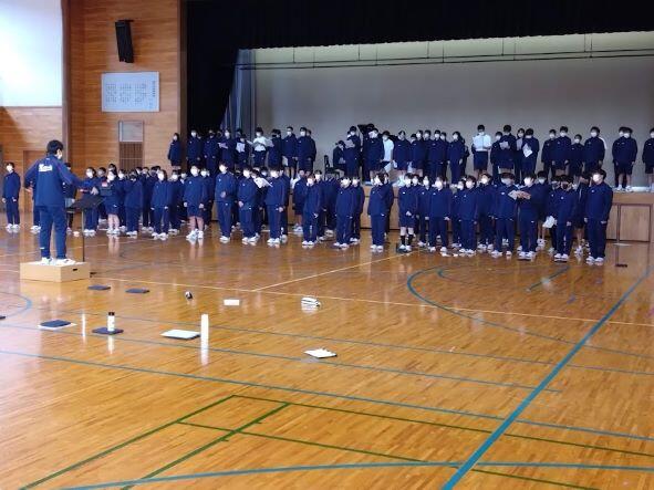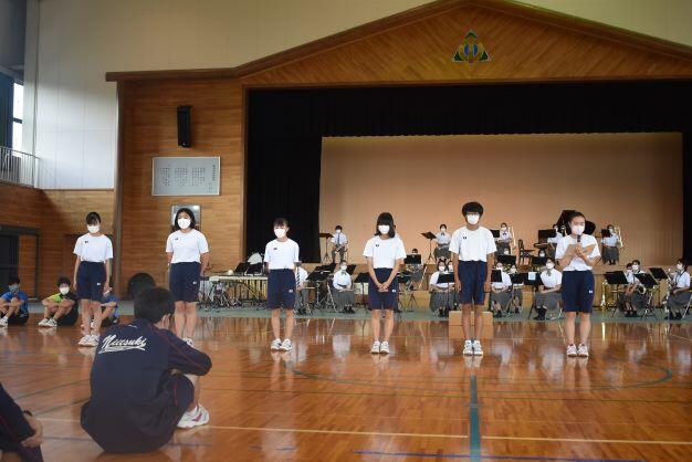 6月22日(木)に行われる陸上大会に向け,壮行式が行われました。選手紹介では,全ての選手が大きな声で返事し,大会での健闘を祈って全校生徒から出場選手にエールを送るとても立派な式となりました。