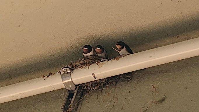 新月中学校の花壇に,ホバリングしながらホース状のクチバシで花の蜜を吸う生物が。