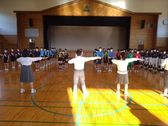 後半は,紅白の組に分かれての決起集会が行われ,団長,副団長のあいさつに続き,士気を高めるパフォーマンス。最後には各組が円陣を組んで轟きを上げ終了となりました。来週からの運動会練習と土曜日の本番がとても楽しみになる時間となりました。