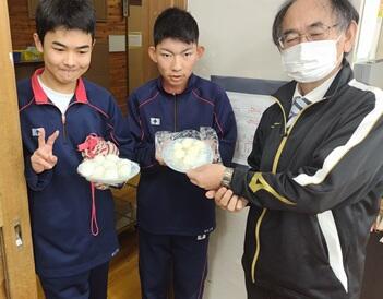 12月12日(金)今日のかみかみ給食のメニュー「わかめのピリシャキサラダ」は,本校教諭 白石永先生が考案し,市の給食に採用されたメニューです。本人に聞いたところ,「噛み応えがあり,しかもヘルシーでおいしい」のがポイントだということでした。他の先生方や生徒からの評判も上々でした。よく噛んで食べる習慣を身に付けていきましょう。