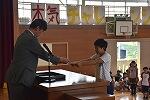 また,終業式終了後には,虫歯ゼロの子供に「ダイヤモンド賞」,図書室の本をたくさん読んだ子供に「多読賞」,マラソンを頑張った子供に「マラソンがんばり賞」,漢字練習をがんばり,よい成績を収めた子供に「漢字達人(名人・鉄人)賞」が贈られました。