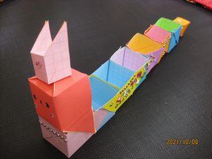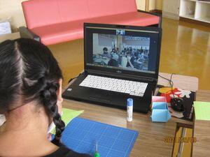 図工ではzoomで交流学習をしています。これは「かみわざ!小物入れ」の学習です。