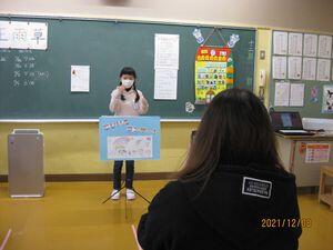 明日から冬休みということで「冬休み前の会」をしました。思い出や頑張ったことなどを振り返り,クリスマス会風にお茶で乾杯した後,歌やゲーム,出し物,プレゼント交換などをしました。明日からの冬休みやクリスマスを楽しみにしているようです。