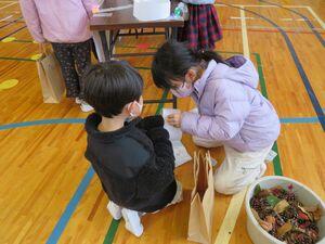 12月10日水曜日,1年生は葦の芽星谷幼稚園年長組の子供たちを招待して,「おまつり」を開きました。自分たちが作ったおもちゃで幼稚園の子供たちに楽しんでもらうためです。1年生は,本当に優しく丁寧に接してくれました。おかげで幼稚園の子供たちは,笑顔いっぱいでした。すっかりお兄さん,お姉さんになった1年生!!より良く成長してくれています!