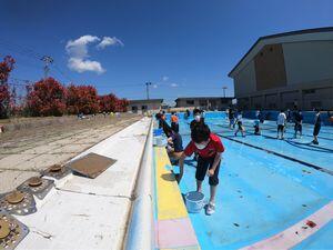 3,4校時は6年生が,プールの中の仕上げやトイレや更衣室などの清掃を行いました。