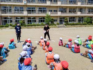 担任のO先生とは別な指導者の姿が校庭には見られました。実は教育実習生のK先生です。K先生は面瀬小学校の卒業生で,25日から6月21日までの4週間,母校で実習を行います。リレーの指導は2カ所に分かれますのでO先生一人では難しいのでO先生としても大助かりでしょう。見ているとK先生の指示の仕方もなかなかのものです。