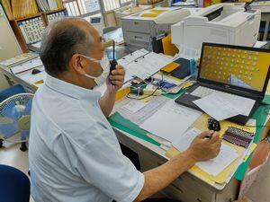 今日は,職員室の朝の様子を紹介します。7:30に昇降口を開けて子どもたちを迎え入れますが,現在はコロナ感染対策のため昇降口で健康観察カードのチェックをしています。記入もれがあった場合は,トランシーバーで職員室の教頭先生に連絡が入ります。