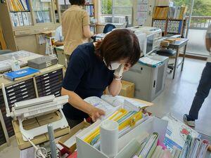 先生方にも会場の最終準備をしてもらいました。パイプ椅子の消毒,出入り口へのサーモカメラや消毒液の設置など感染対策をしてお待ちしています。
