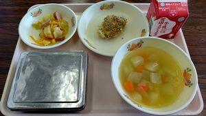 ごはん 鶏肉のパン粉焼き キャベツのソテー コロコロスープ 牛乳