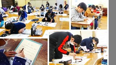 1月15日(水)は校内席書大会でした。全校で,これまで練習してきた硬筆と毛筆の書きぞめに取り組みました。校舎の中には,凜とした空気が流れ,子どもたちは集中してお手本をよく見て筆を運んでいました。