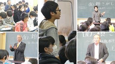 15日に引き続き17日(金)に地域からゲストティーチャーを招いてお話を伺いました。それぞれの講師の方々から煙雲館や面瀬川,尾崎地区の暮らしなどを題材に,面瀬地区ができる前の昔の子どもたちの遊び,人々の暮らしの様子を聞き,地域への思いを新たにすることができました。