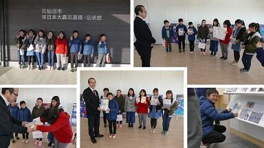 『お店に置いてね』プロジェクト3回目となる今回は,気仙沼プラザホテル,大島汽船,新魚市場の3カ所でPRしてきました。どの訪問先でも懇切丁寧にお出迎えをしていただき,子どもたちの説明に真剣に耳を傾けてくださいました。