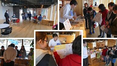 次に気仙沼内湾の□ship(スクエアシップ)を訪問しました。おさんぽBINGOを紹介すると大変興味をもって聞いていただきました。子どもたちは,自分たちの作った物をいいねといっていただき,とても嬉しくなりました。サンプルを置かせていただきました。たくさんの人たちの目にとまるといいです。